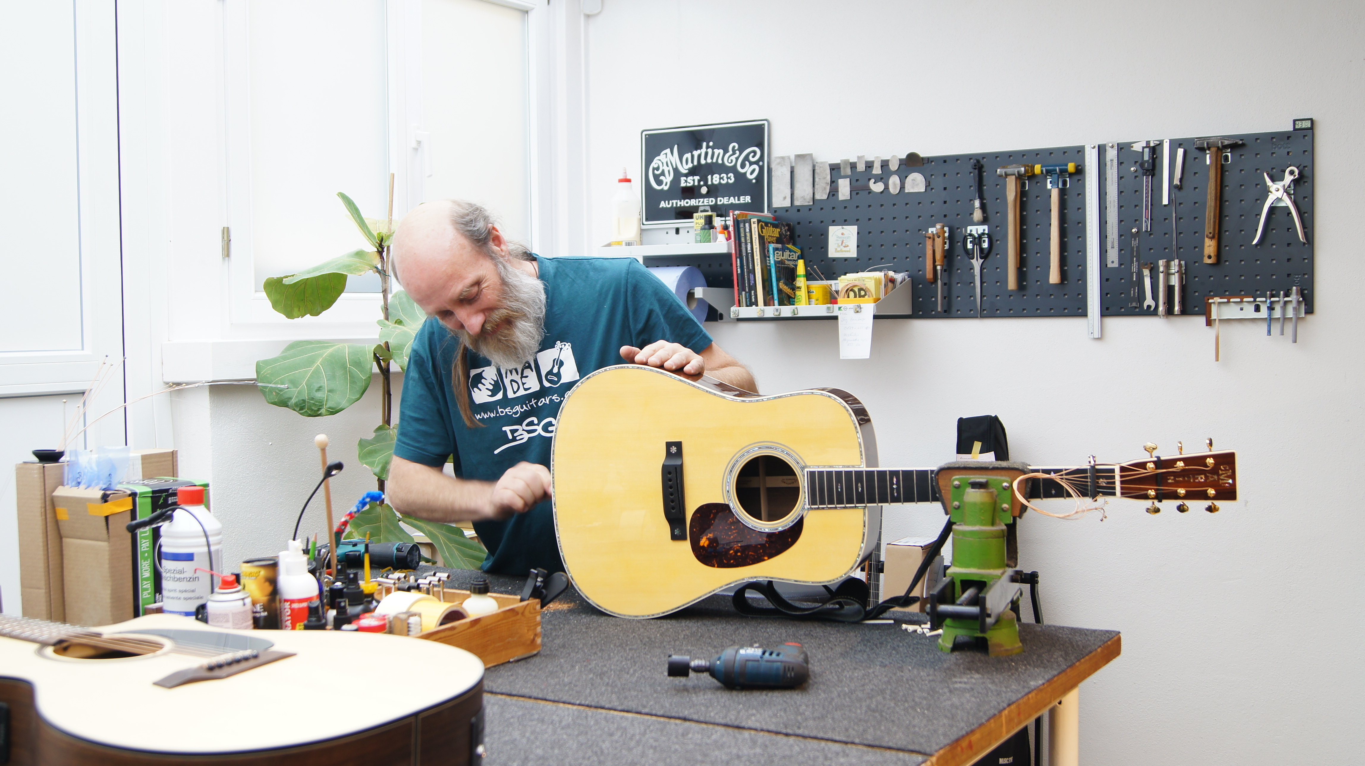 Unsere Werkstatt bietet dir jeden Service zum Thema Gitarren & E-Gitarren: Saitenwechsel, Saitenlage, Intonation, Tremolo einstellen, Stegeinlagen, Bundstäbe nacharbeiten oder auswechseln, Mechaniken etc. modifizieren oder erneuern, Tonabnehmer einbauen oder wechseln, Holz- und Lackarbeiten...