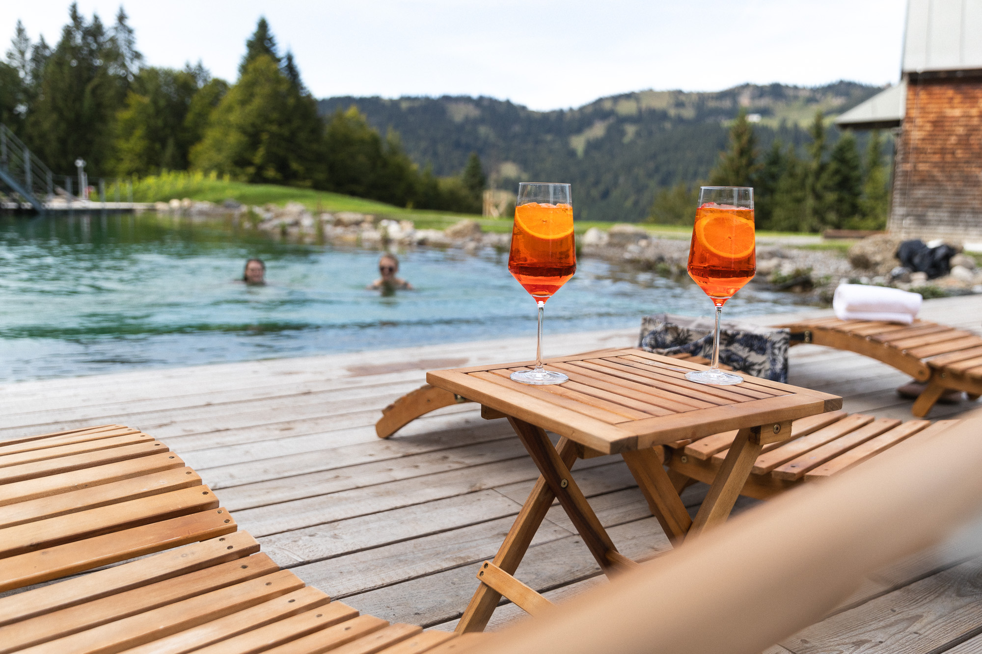 Panorama-Sauna, Außen-Whirlpool, Yoga-Angebot, Naturbadesee.